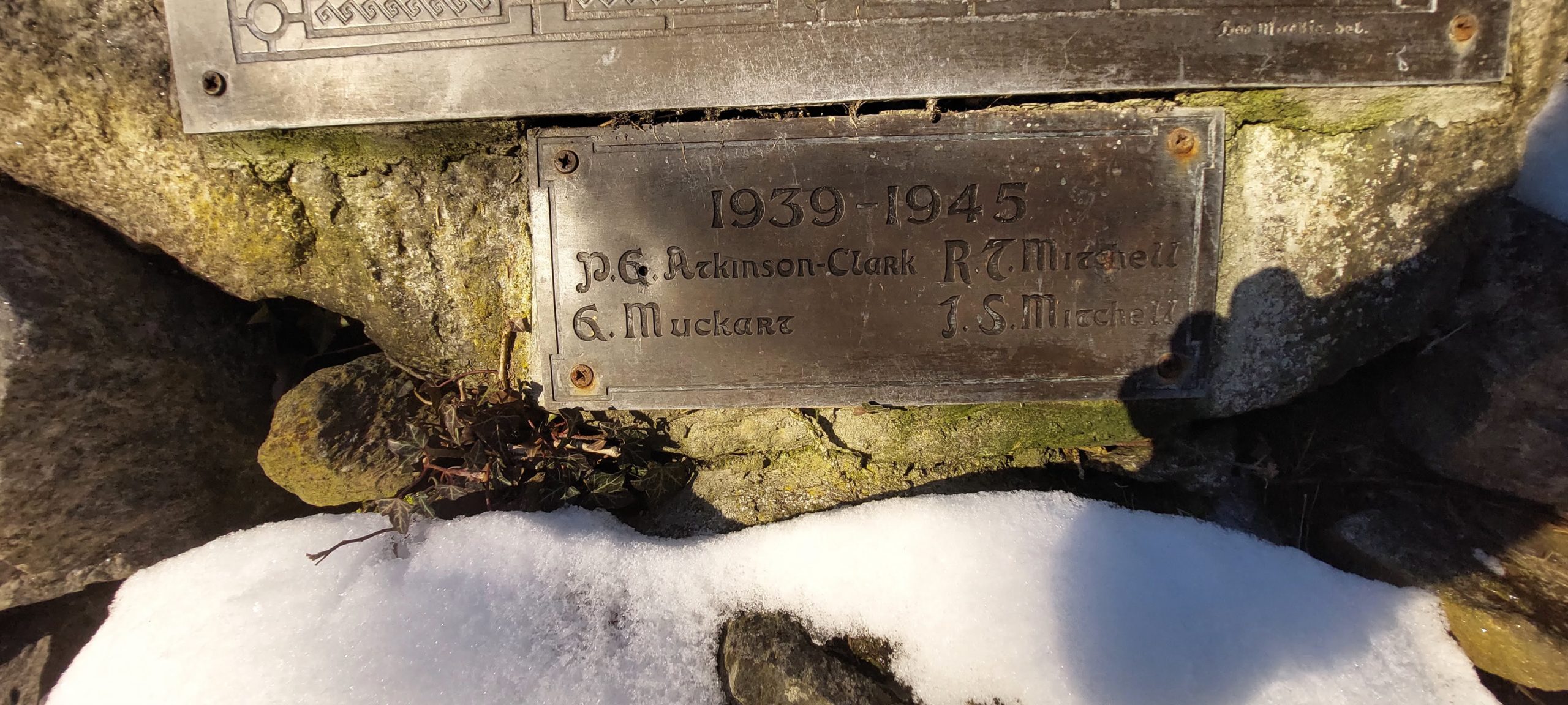 Main WW1 Plaque-TO THE GLORY OF GOD/[names in 2 columns flanking the central engraved Celtic cross]/MEN OF STRATHARDLE who fell in the War/1914-1919/This TO THEIR MEMORY/and/in honour of all who served/ Extra WW1 Plaque-Likewise fell/[name]/1914-1919 WW2 Plaque-1939-1945/[names in 2 columns]